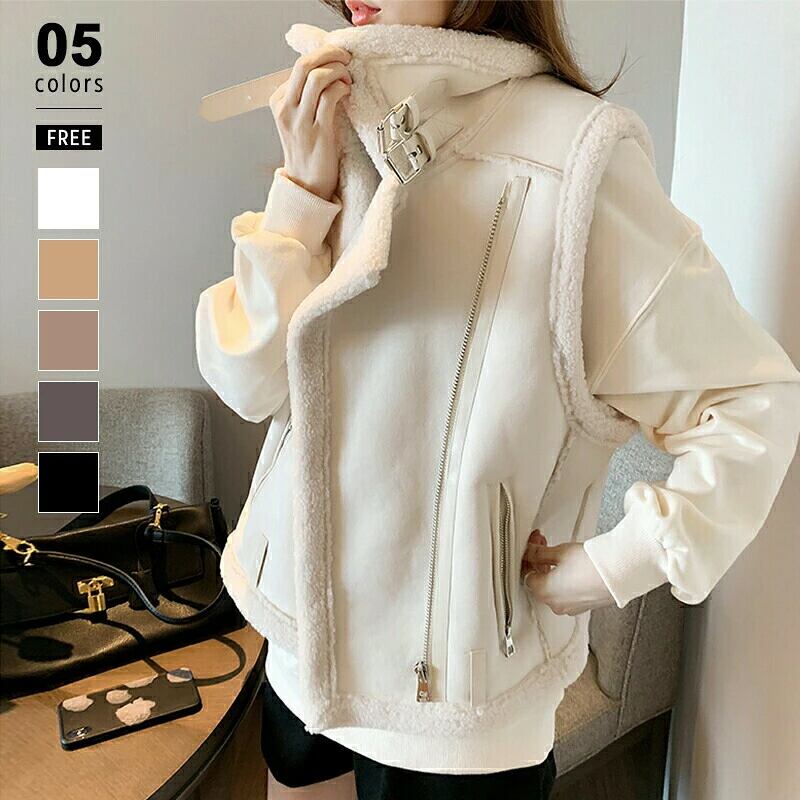 ベスト レディース ボア ボアベスト 裏起毛 ムートンベスト アウター フェイクムートン もこもこ 羽織 暖かい ショート丈 ノースリーブ 厚手 フェイクレザー 秋冬 秋 冬 韓国 ジャケット ムートン