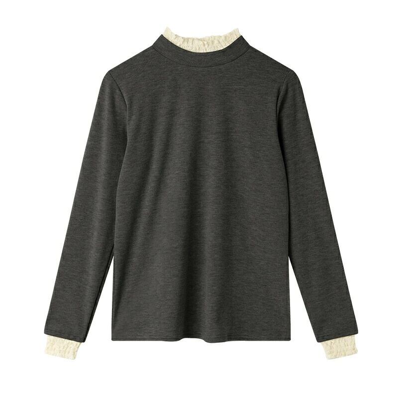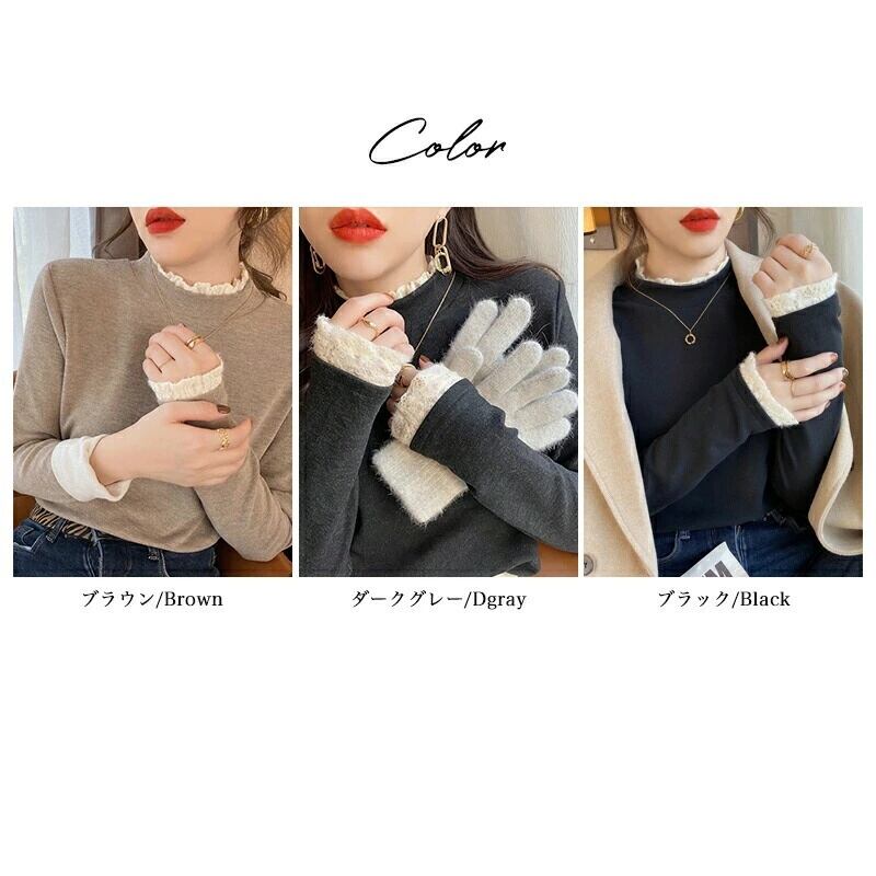 裏起毛 ニット フリルネック トップス レディース フリル ハイネック ニットセーター カットソー ロンT インナー オフィスカジュアル きれいめ 上品 大人 可愛い 重ね着 暖かい 秋冬 春 秋 冬 韓国 セーター 長袖 ニットトップス