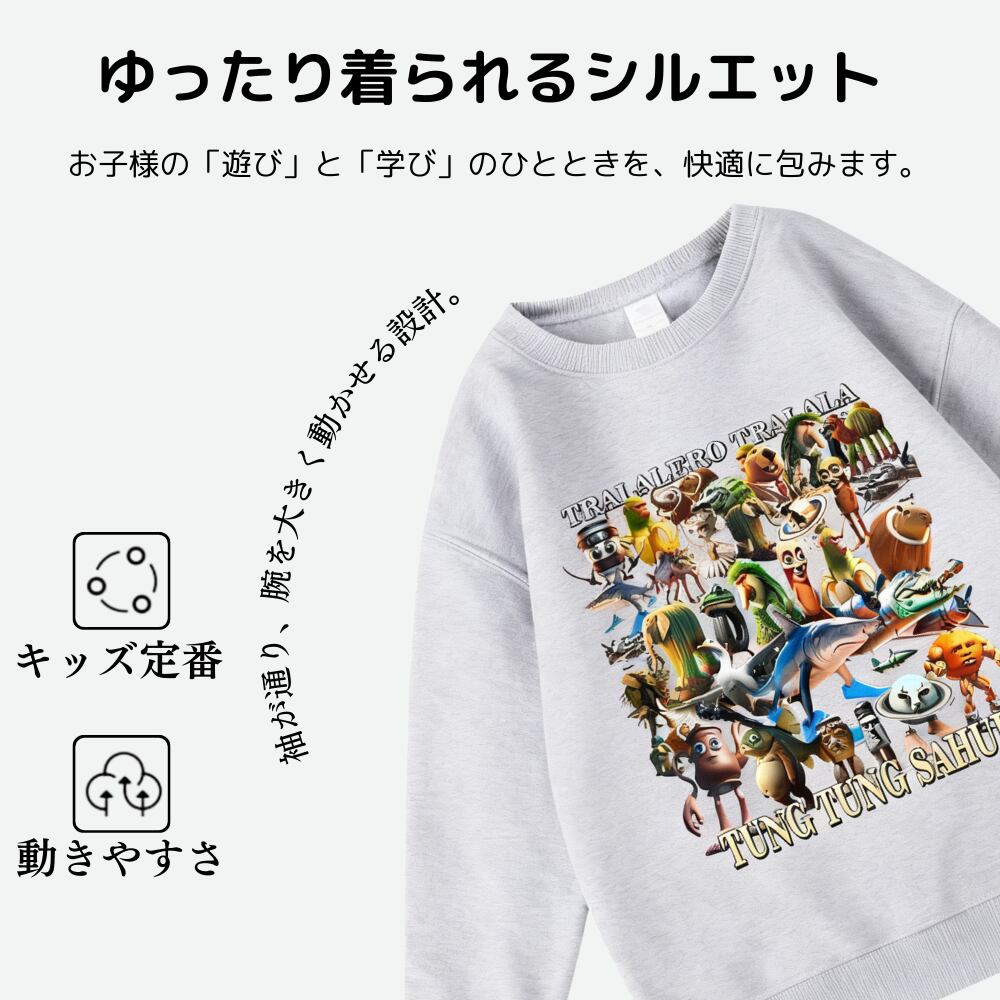 トゥントゥントゥンサフール イタリアンブレイン ロット 秋服 長袖 スウェットTungTungTungSahur スウェット タタタタサフール イタリアンブレインロット 子供服 長袖Tシャツ キッズ スウェット 綿100% 大人 子ども服 暖かい ゆったり 秋 冬 通学 通園着 誕生日 プレゼント