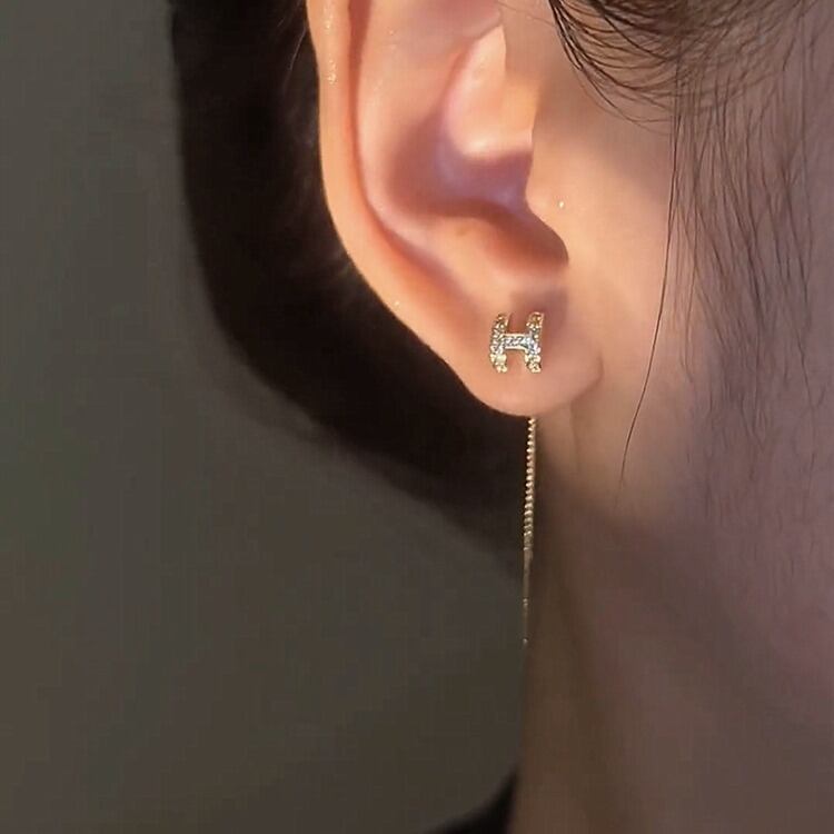 S925 銀針 ミクロパヴェジルコン H レター ロングイヤーライン|ラグジュアリーシンプル ファッションアクセサリー